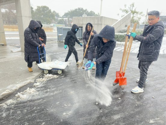 经过数小时奋战,积雪清理完毕,融雪盐与草垫进一步筑牢防滑防线,为大家铺就安全畅通之路。此次行动不仅消除了出行隐患,更凝聚了全办干部职工的向心力,彰显了全办上下一心、务实担当的优良作风。