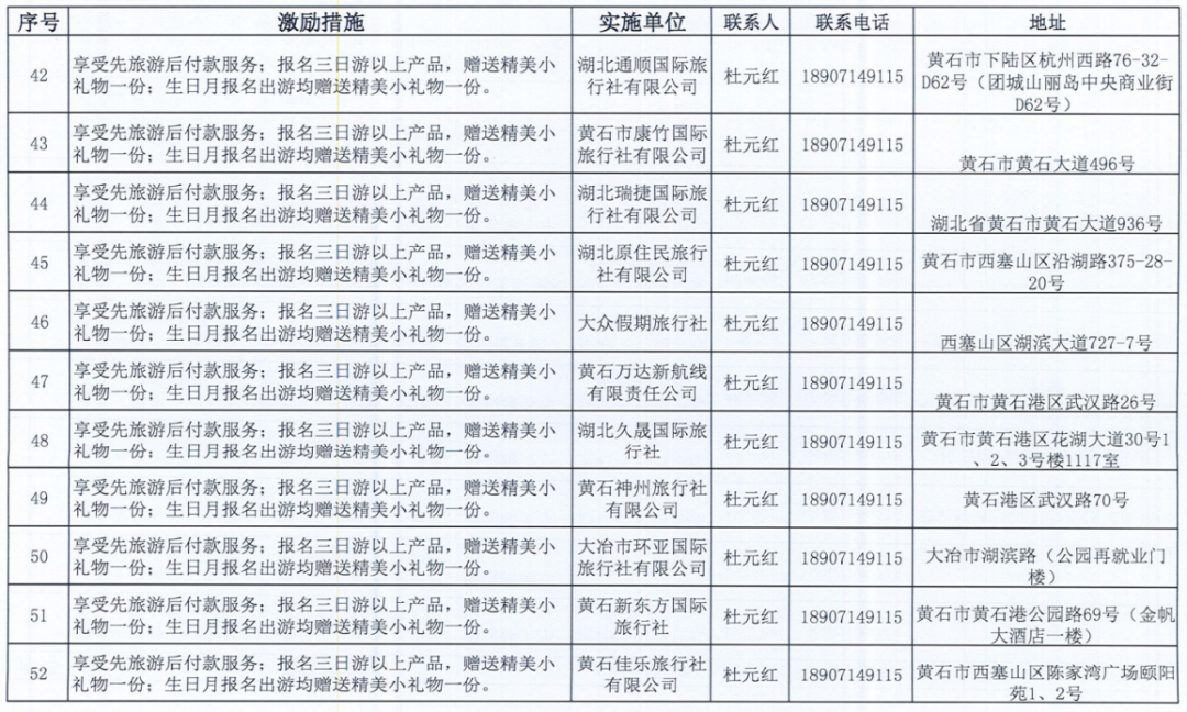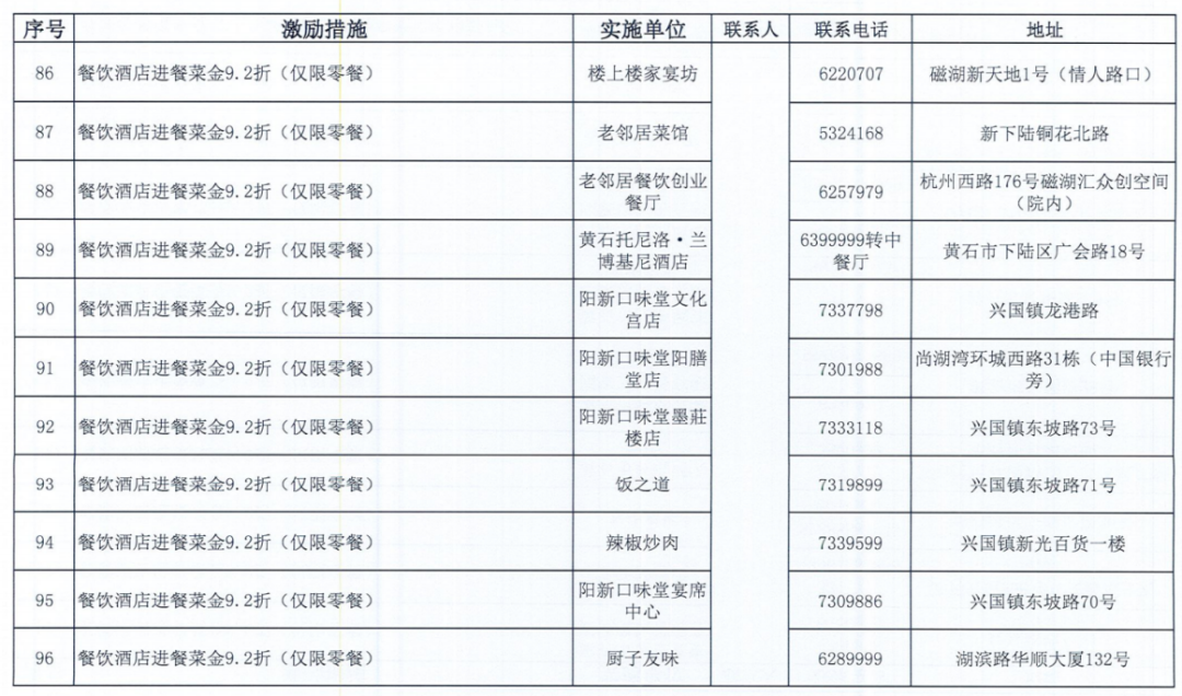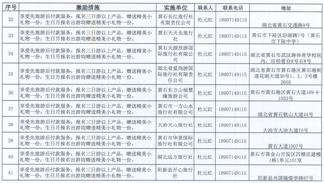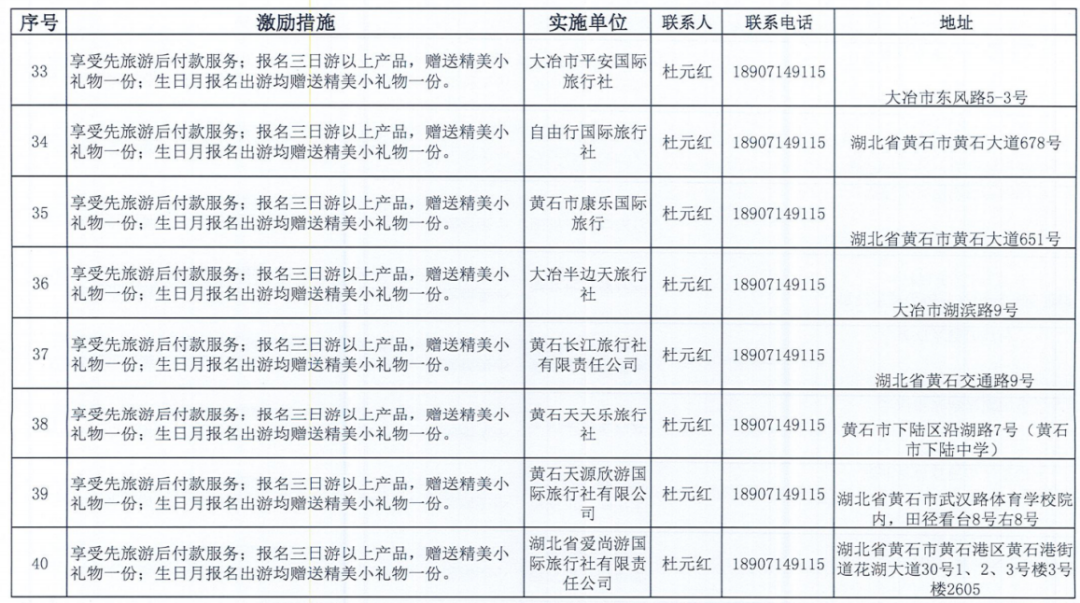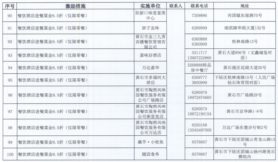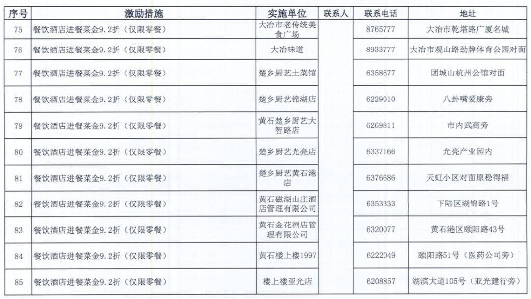 《黄石市个人信用积分激励措施清单》